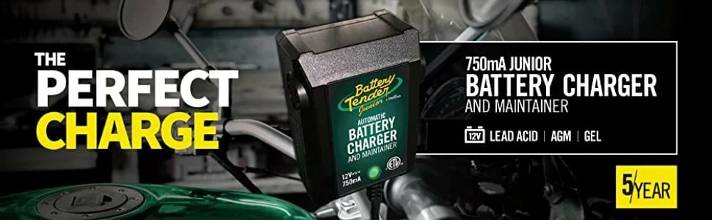 “The Battery Tender® Junior 12V, 750mA Battery Charger and Maintainer is all you need to stay charged, extend your vehicle’s battery life. It’s easy to use, safe and secure. Boost your ride’s battery life with the Battery Tender® Junior Automatic Battery Charger and Maintainer by Deltran for motorcycles, ATVs, and more! Unlike typical trickle chargers that can overcharge a battery and cause damage when connected for too long, our advanced charger and maintainer provide a full charge before switching to float mode to keep your battery at an optimal charge. Designed for use with powersports, it can even assist with automotive vehicles!