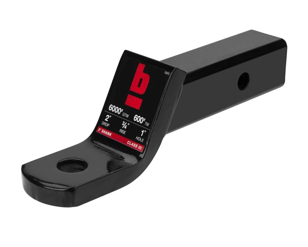This bROK ball mount provides optimal trailer towing with a 2-in drop from the top of your receiver to aid in leveling your trailer while towing. The bROK ball mount is made of welded steel with black powder coat finish for years of service. The 2-in shank accommodates all class III-IV receivers, a 5/8-in hole for receiver pin or lock and a 1-in hole for the hitch ball shank.