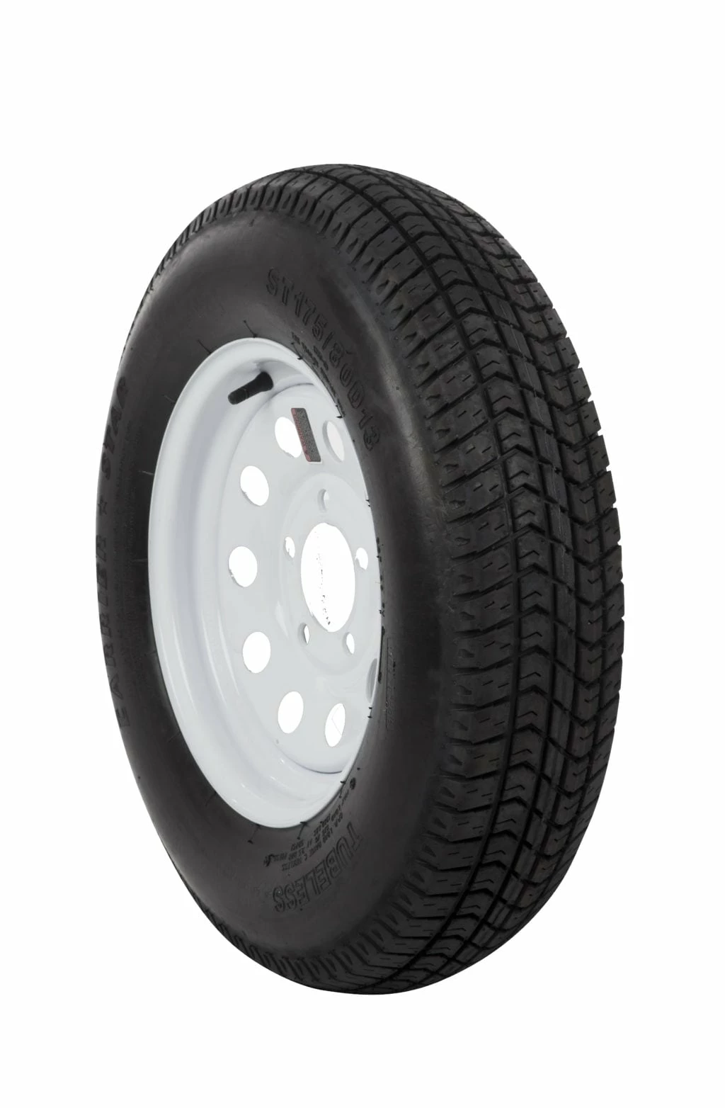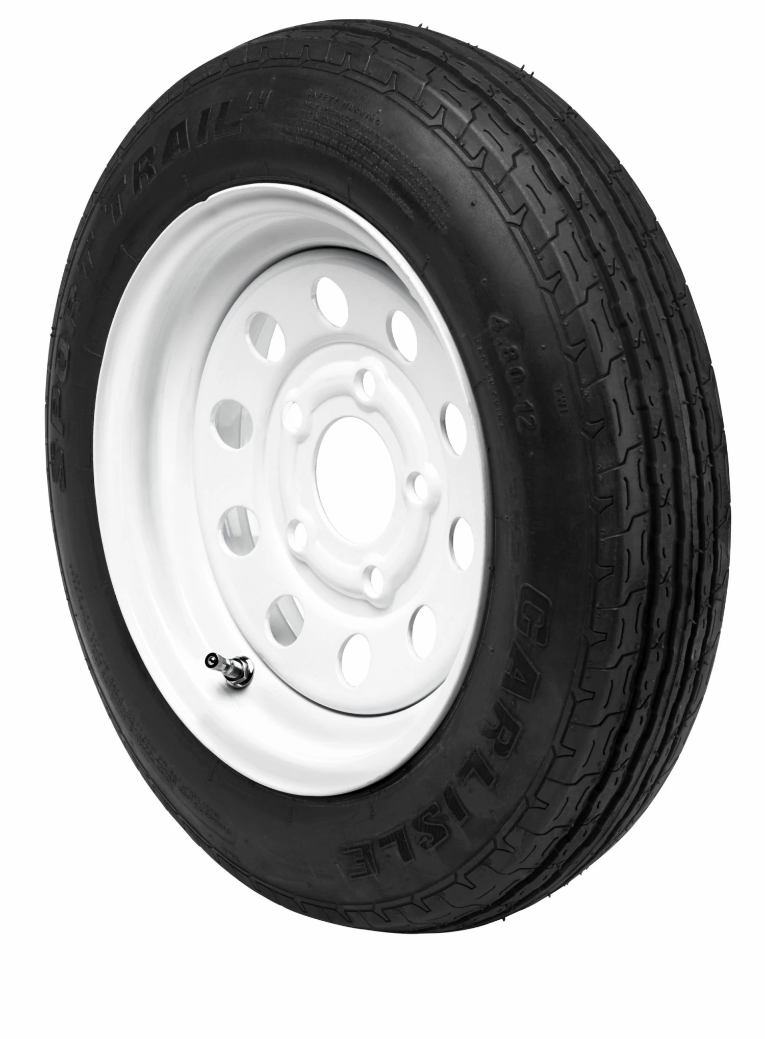 12-in tire with white mod wheel.