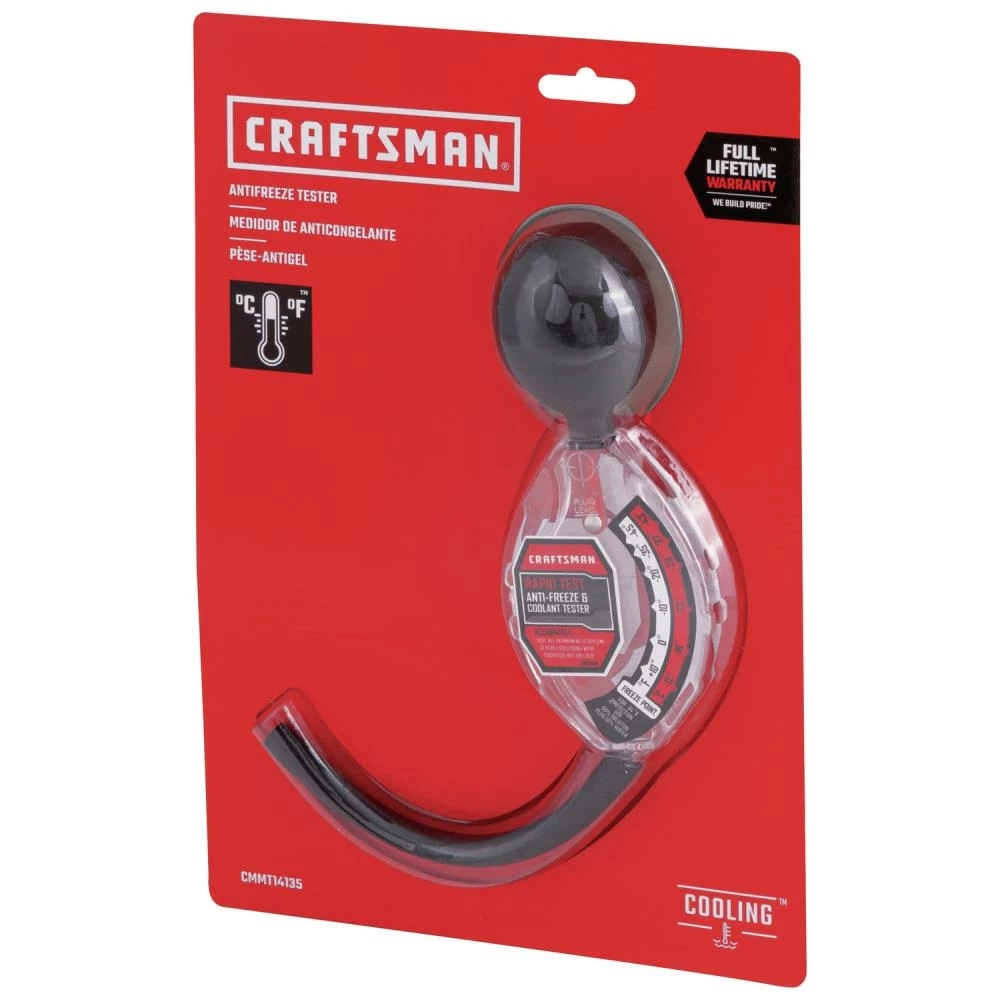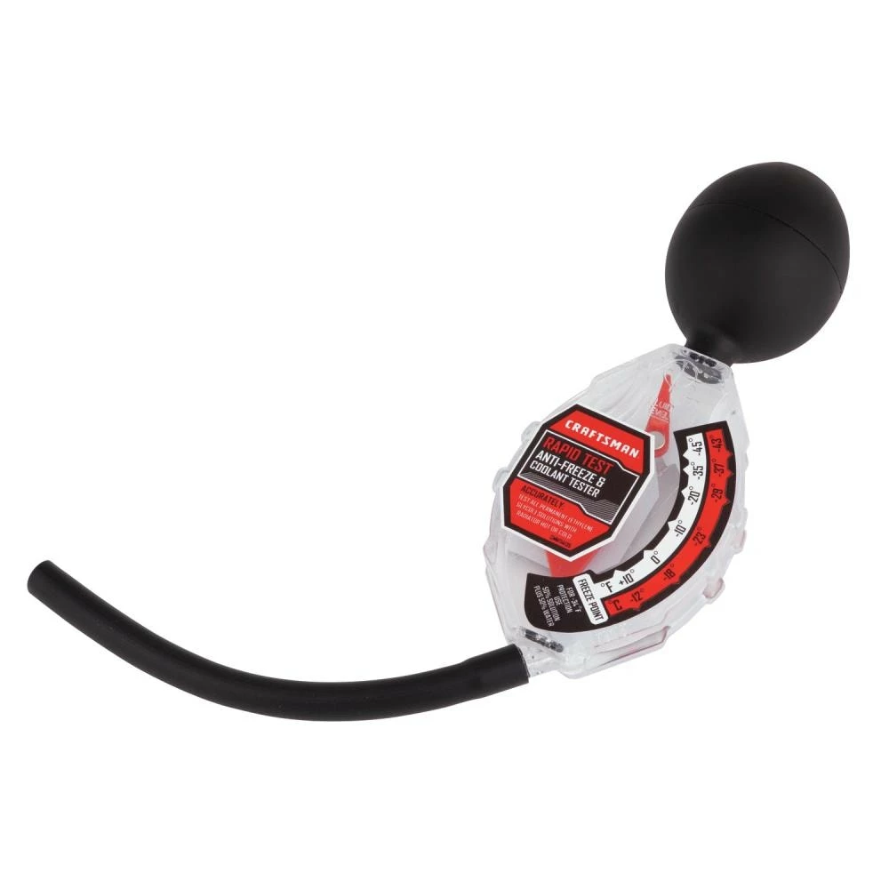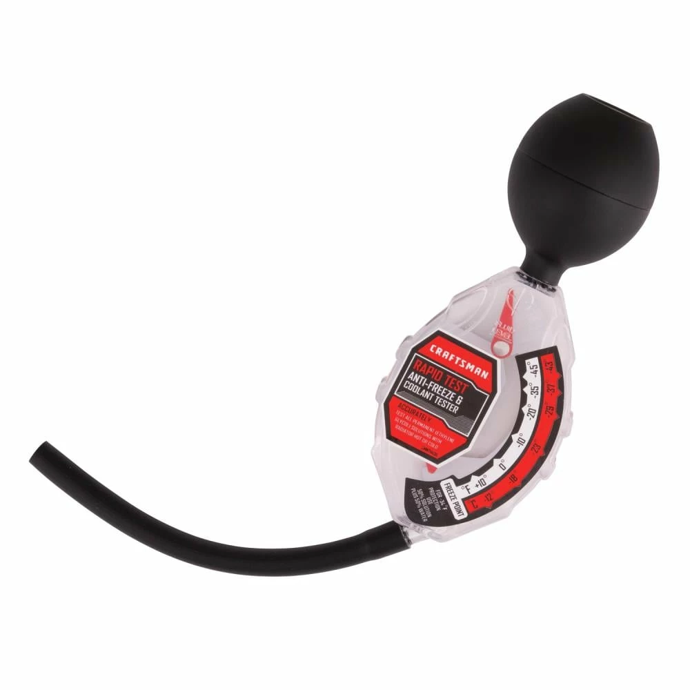 The CRAFTSMAN® Antifreeze tester is used to easily test for anti-freeze and anti-boil protection. Additionally, the body is clear, allowing for visual inspection of rust and other sediments. A vehicle’s antifreeze must be maintained at the proper concentration to provide protection against engine corrosion, freeze-ups and boil-overs. Coolant is drawn into the tool and its performance is determined with the easy-to-read gauges on the tool.