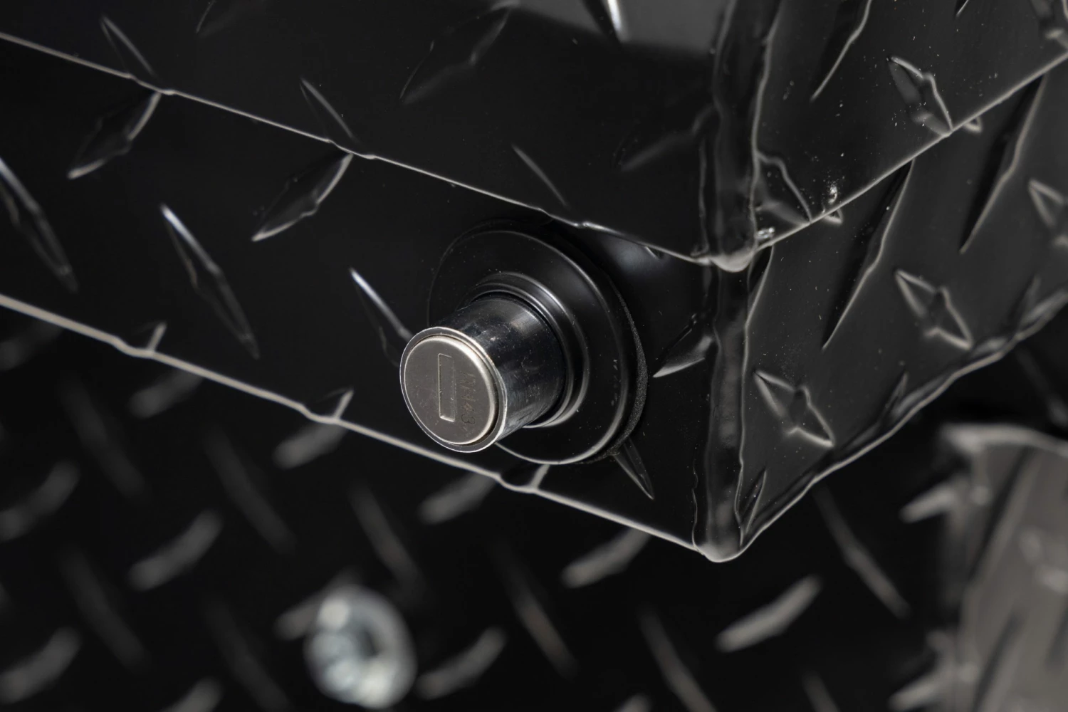 The Craftsman 71 inch Aluminum Slim Crossover Box for full size trucks provides protection for your tools and equipment from the elements and break-ins. The fully-welded aluminum construction and rubber weather seal protect your items from inclement weather. The easy-to-use, lockable push buttons and fully welded loop strikers help resist break-ins. The lid includes 2 gas springs with a protected cover to make opening the lid an easy operation. Included with the box is the no-drill mounting kit that attaches the truck box to the truck bed easily.