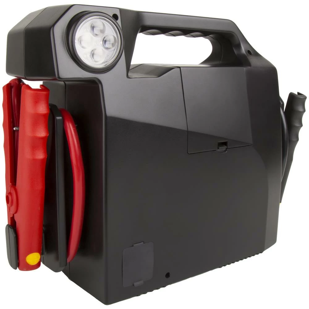 - The Jump-Starter also features a tough weather-resistant housing with 12V auxiliary DC port, copper-clad 6 AWG jumper cables, LED battery fuel gauge, and a bright LED work light