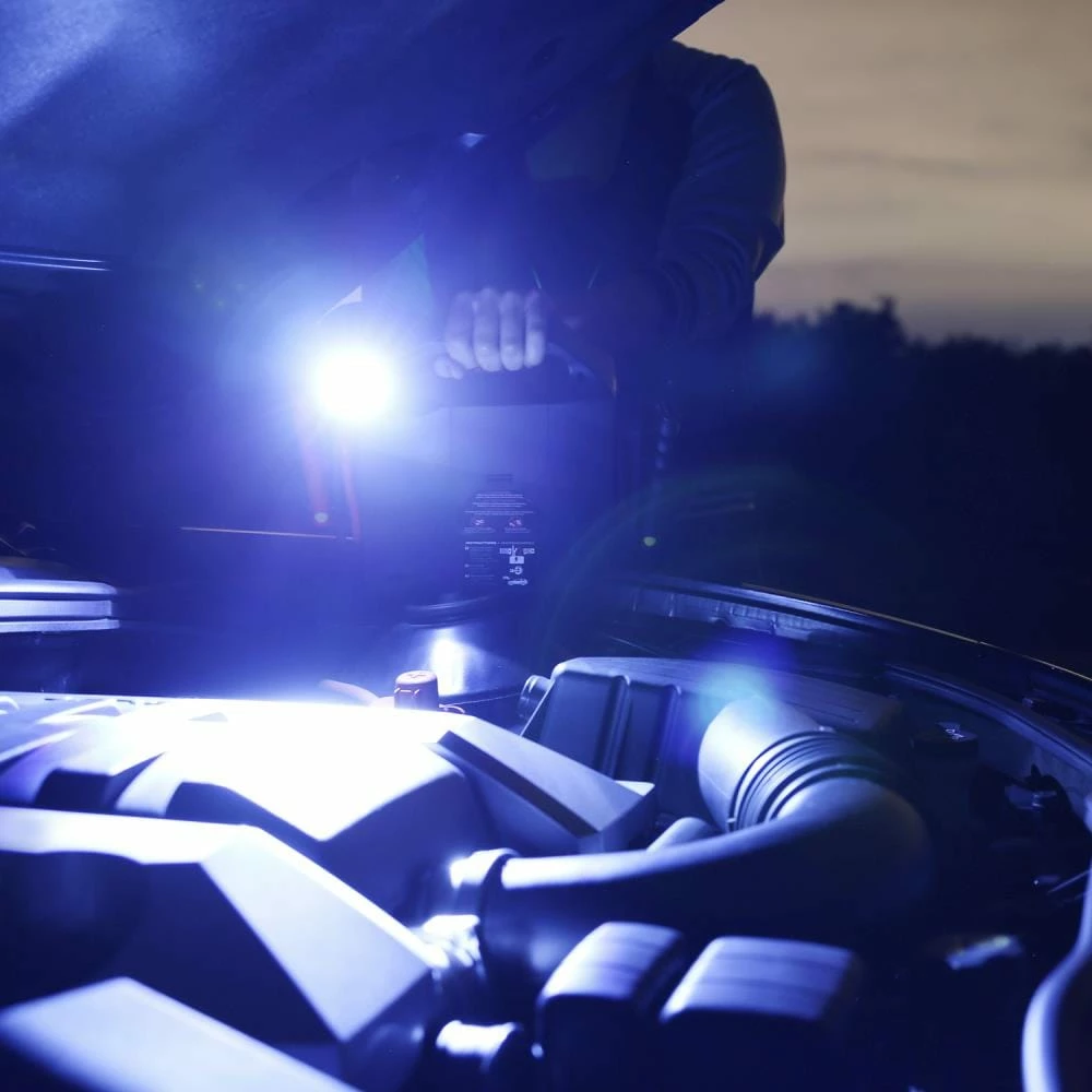 - The tough weather-resistant case also boasts a 12V DC power outlet, LED battery fuel gauge, and a convenient LED work light