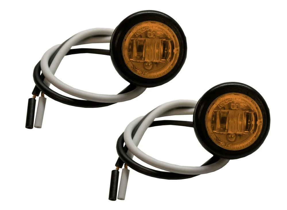 The 2 pk LED 3/4 In. round amber clearance/side marker light meets FMVSS108 requirements for combination clearance. Its small shape is compared to the size of a penny, hence the nickname penny light. The clearance marker is PC rated meaning that it can be seen 90 degrees off from its center, helping to make your trailer more visible from all angles. The 12V marker light contains 1 high-output LED for exceptional brightness and performance. The life of a LED light far exceeds traditional incandescent lights and draws significantly less power. The side marker light and can also be used as id lights(3 required), utility, step well, or cabinet lights. The penny lights come with a rubber grommet and easily installs into any 3/4 In. opening.