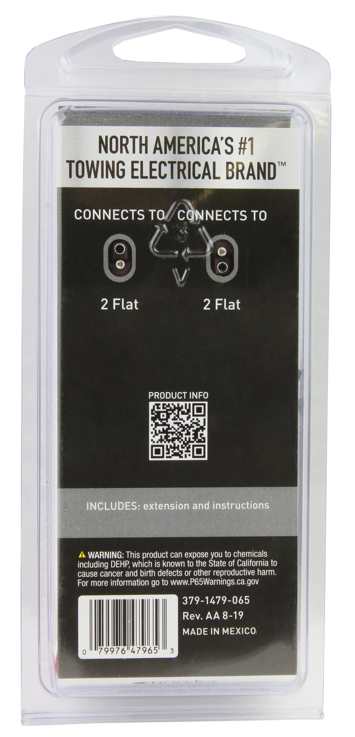 The 2 pole flat connectors are great for many 12 Volt applications. With one function pin and one ground pin this connector can be used to supply power to hardwired accessories or can be cut to provide 2 replacement plugs that connect to each other.