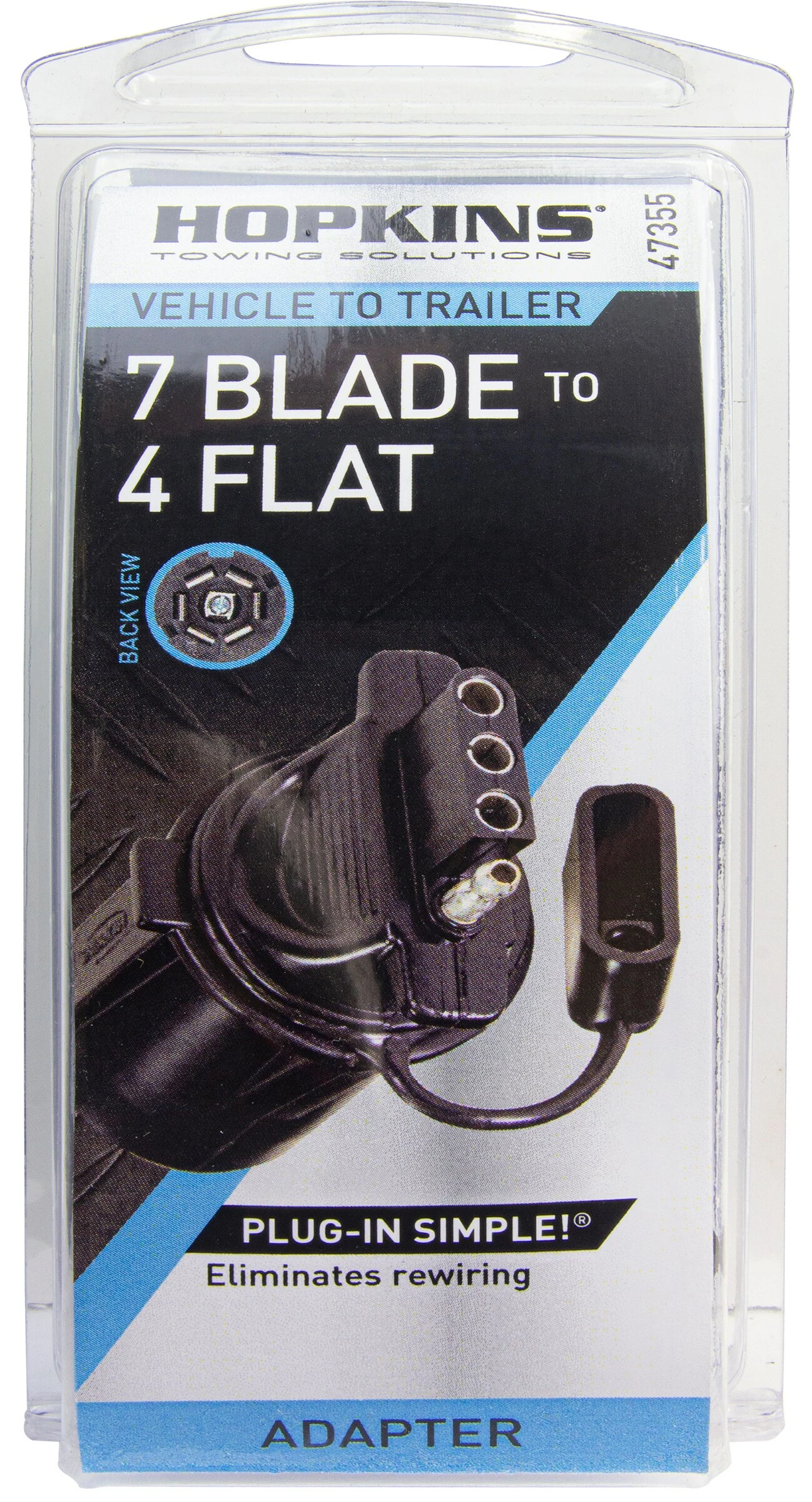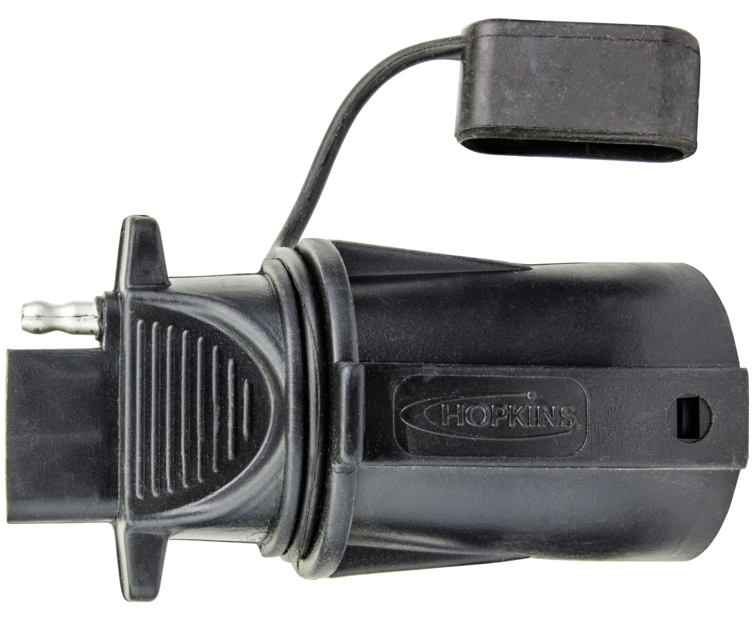Quickly convert your 7 blade vehicle side connector to a 4 flat trailer end connector. This adapter has a patented weatherproof design and includes a dust cover for the 4 flat to help prevent corrosion.